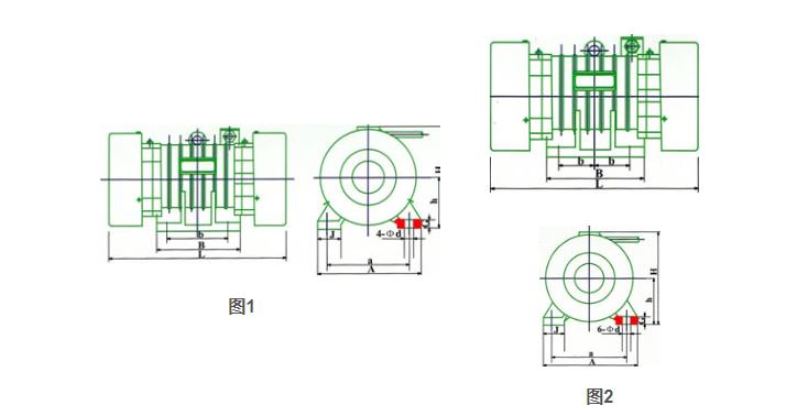 | 型號(hào) | 激振力 KN | 額定功率KW | 額定電流A | 振動(dòng)次數(shù)次/分 | 安裝型式 | L | B | b | A | a | h | H | G | J | d | 圖 |